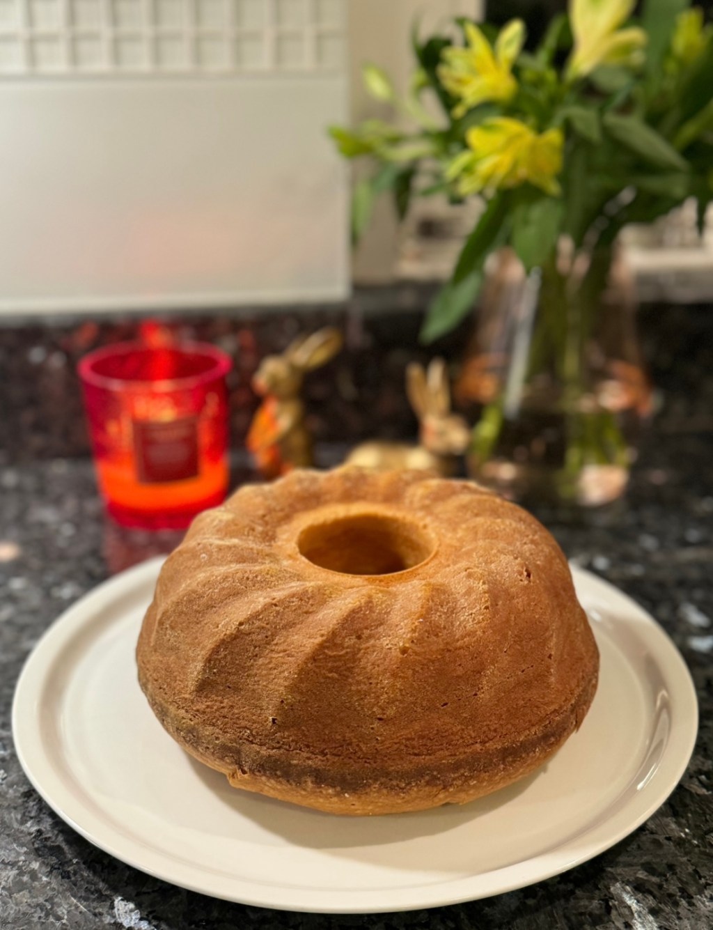 Bake for about an hour, or until the cake springs back when you gently press on the top of it. Cool on a wire rack for 10 minutes, then invert the cake onto the rack to cool completely.