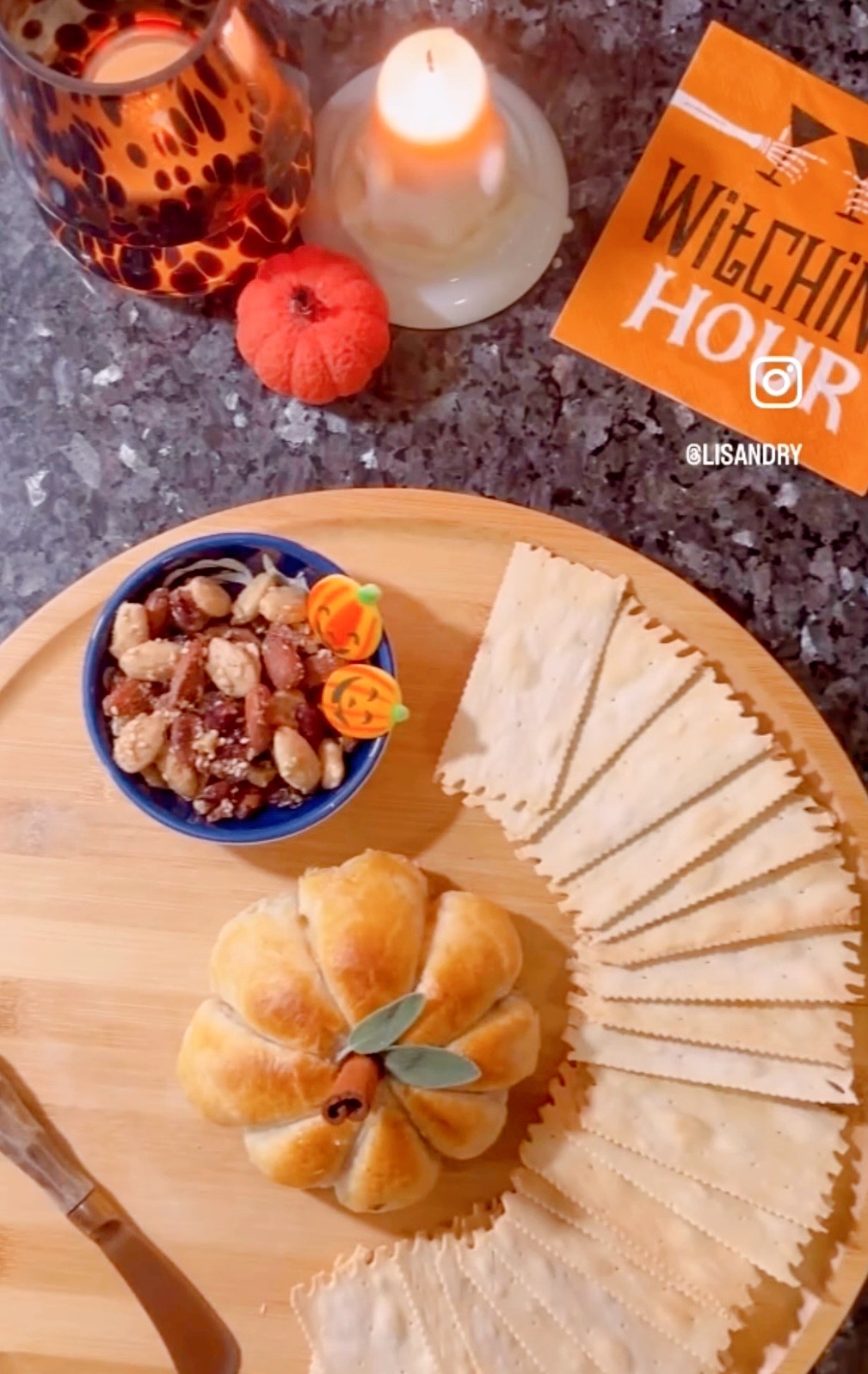 Pumpkin Brie with fig jam — soft, gooey, and so good !