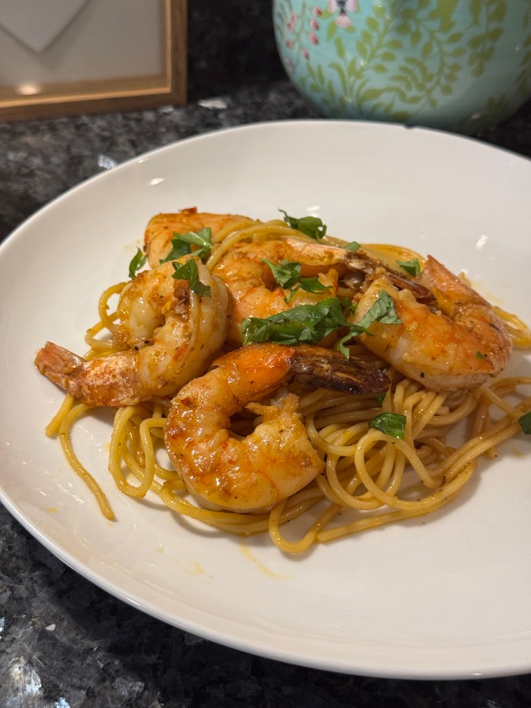 Linguine with Shrimp & Cilantro in a Creamy Jerez Sauce